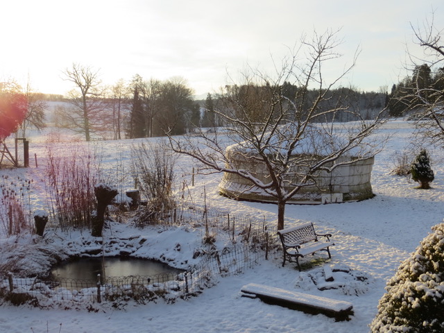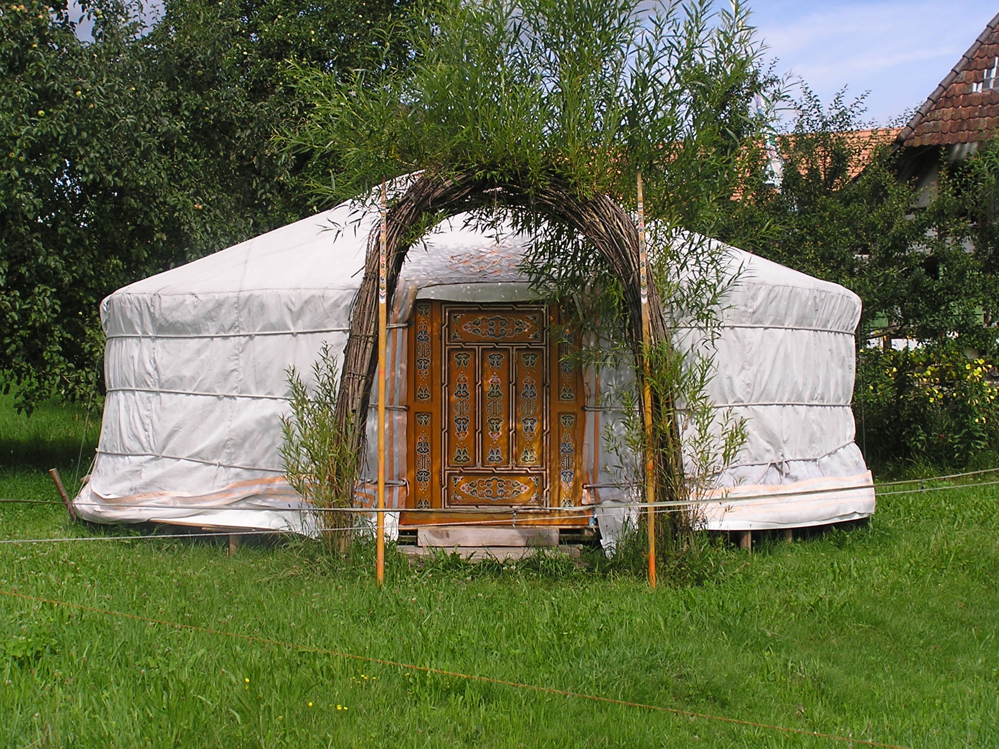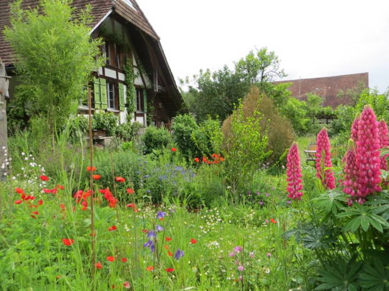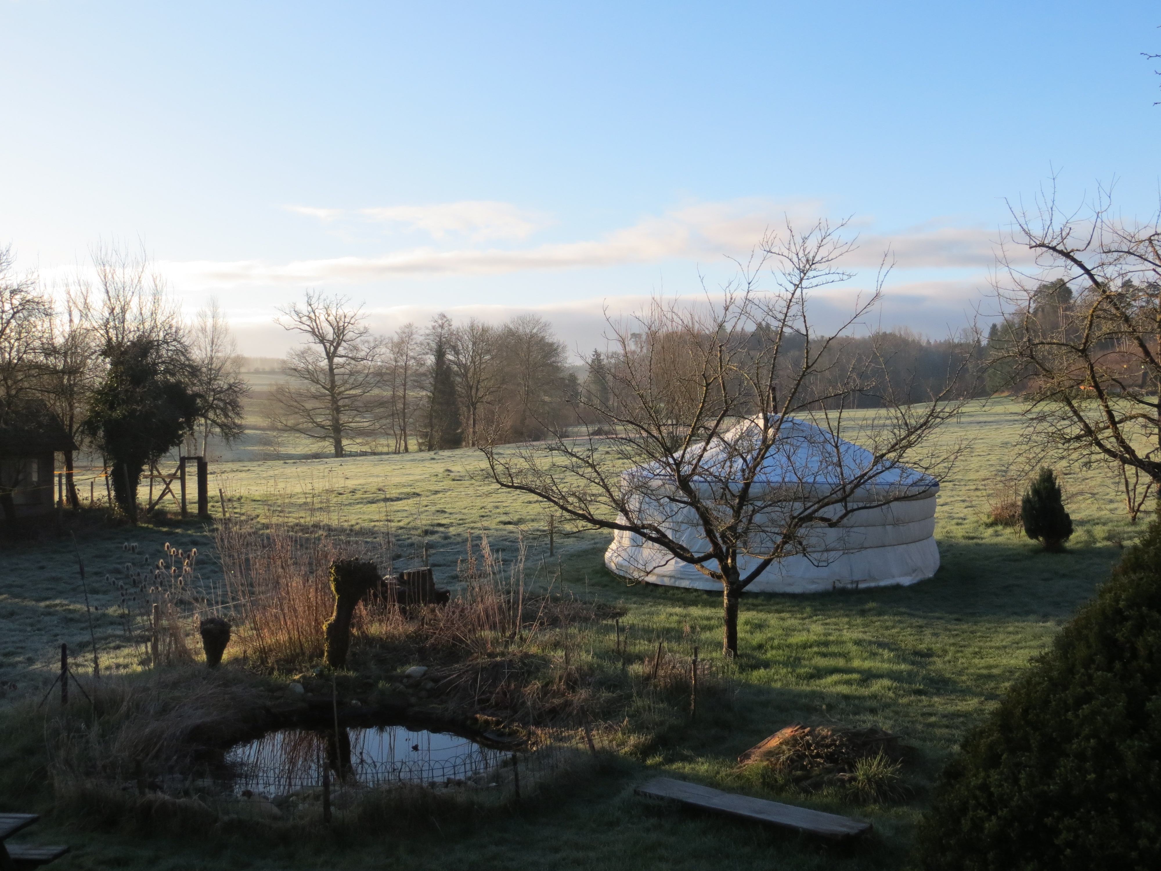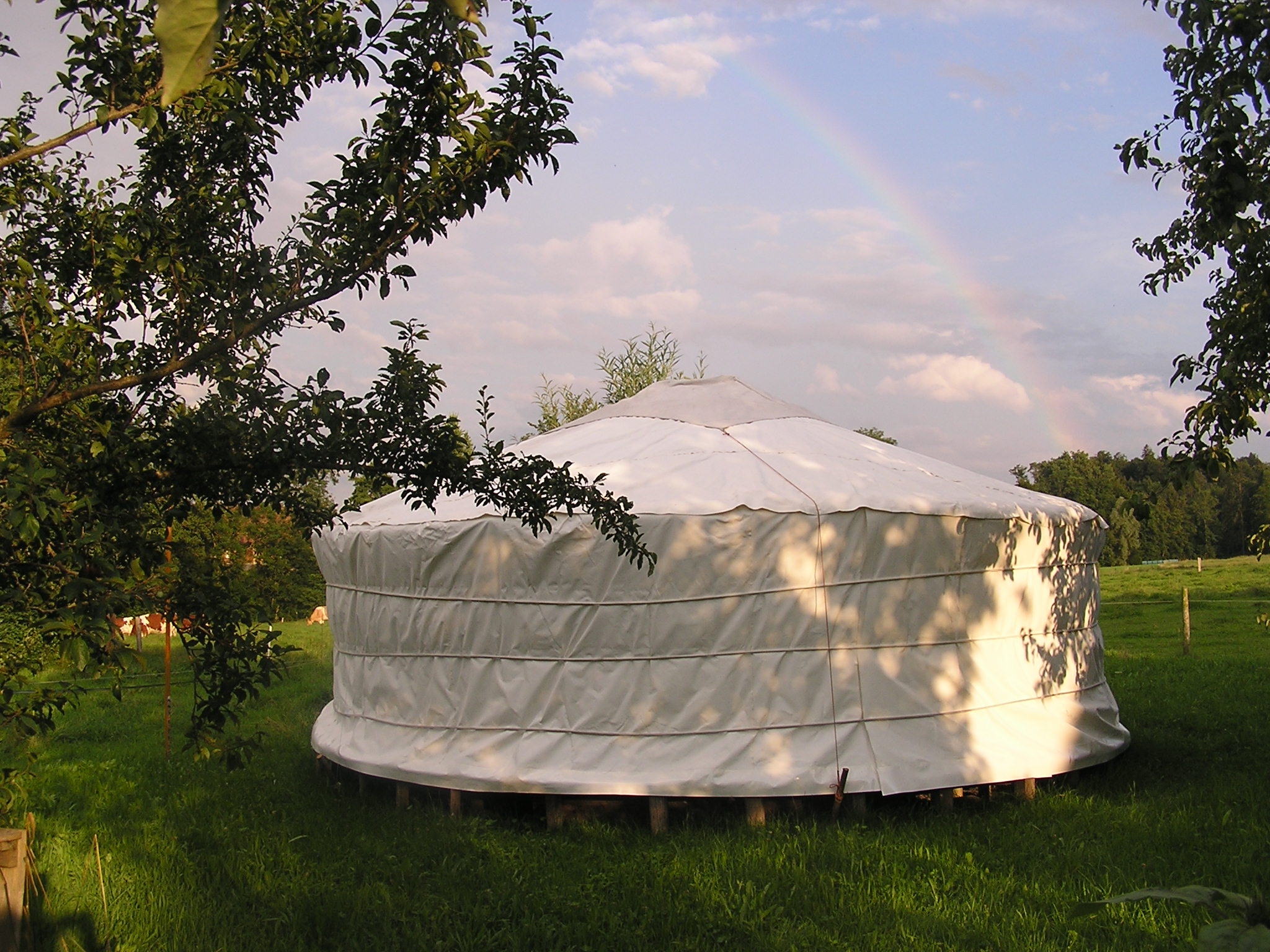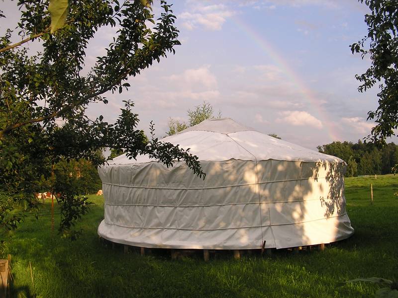 Die freundliche original-mongolische Jurte aus Filz steht inmitten eines wilden und artenreichen Gartens, mit Blick auf Kuhwiese, den Bachsaum und bei guter Sicht auch auf die Alpen im Süden. Sie dient als geschützter Raum für das seelenzentrierte Coaching und als Kulturlokal für seelenberührende Anlässe.